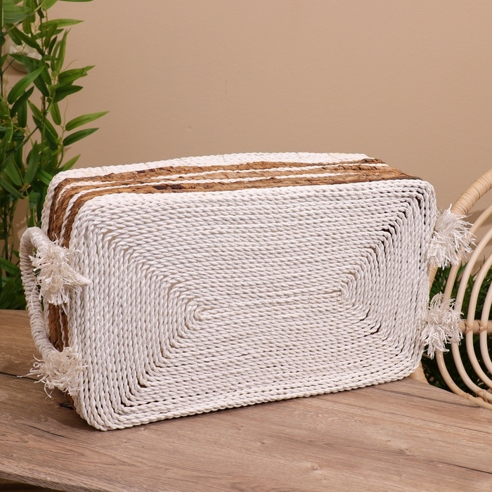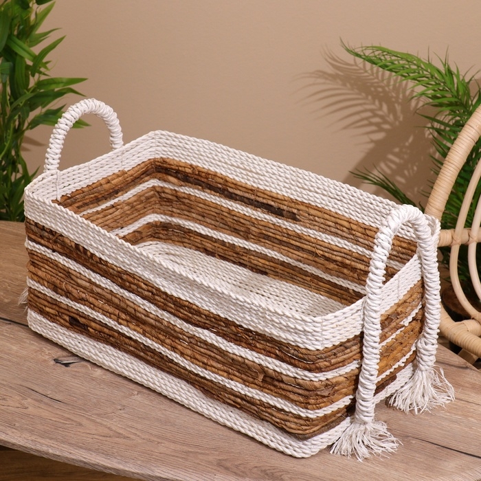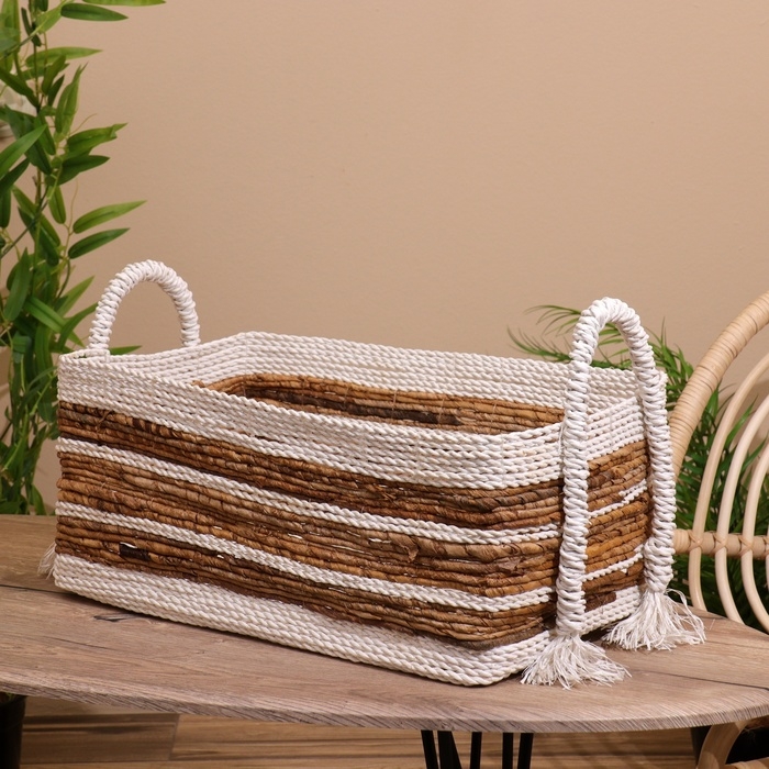 Плетёная корзинка сделана из экоматериала вручную, поэтому двух одинаковых экземпляров не найти.