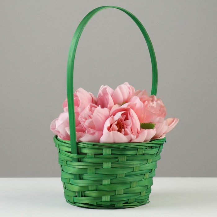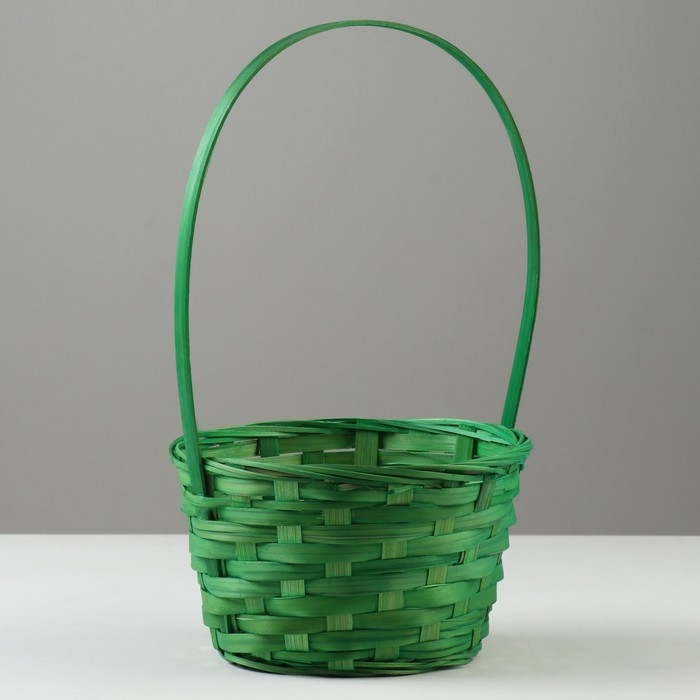 Корзина плетеная, D19 х 9,5 х 32 см, зелёная, бамбук