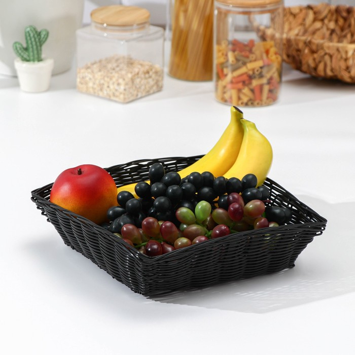 Корзинка для подачи Доляна «Плетёнка», 24×24×6,5 см, цвет чёрный