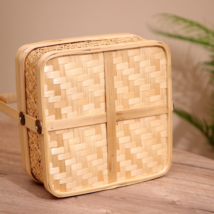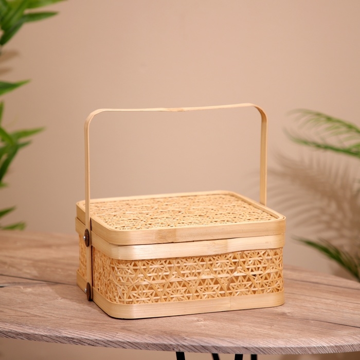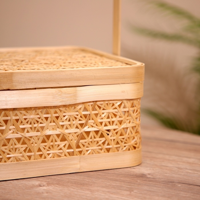 Корзинка с крышкой плетёная, из бамбука 25х25х25 см