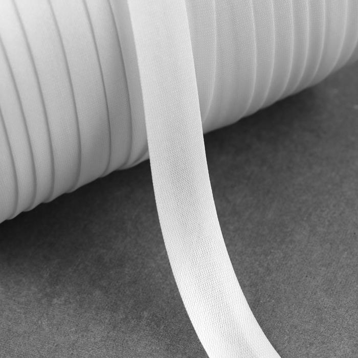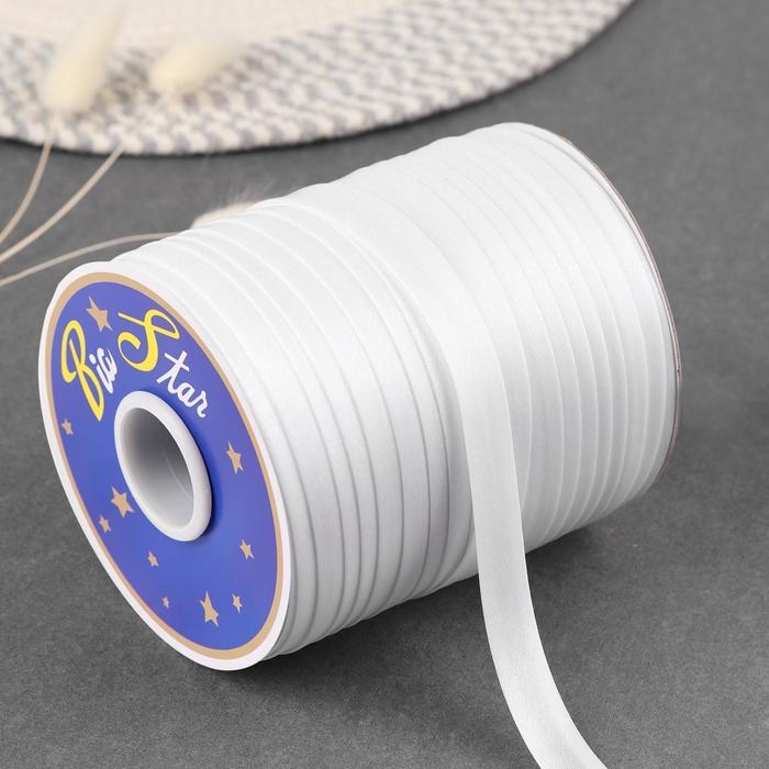 Косая бейка атласная, 15 мм × 132 м, цвет белый F101