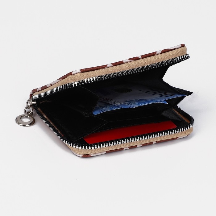 Кошелёк на молнии, отдел для карт, для монет, цвет коричневый