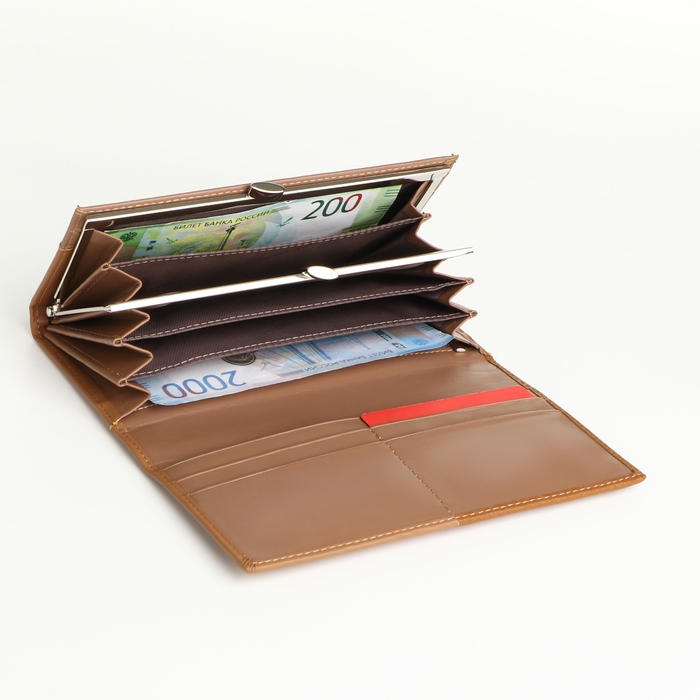 Кошелёк женский на магнитах, цвет коричневый/бежевый