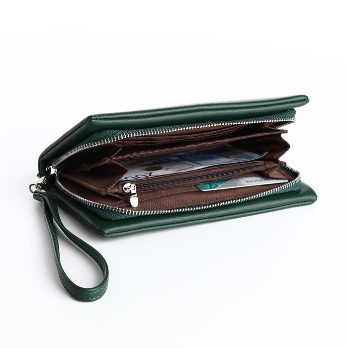 Кошелёк женский на молнии, цвет зелёный