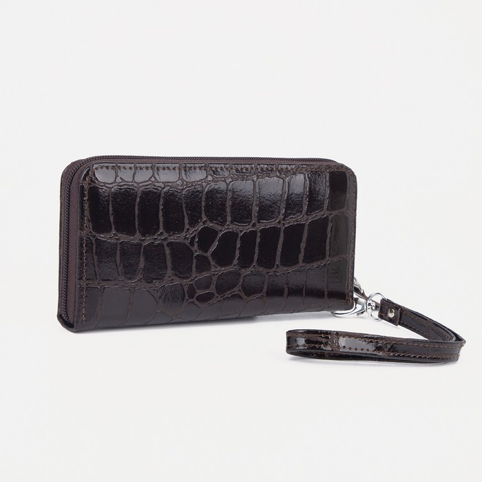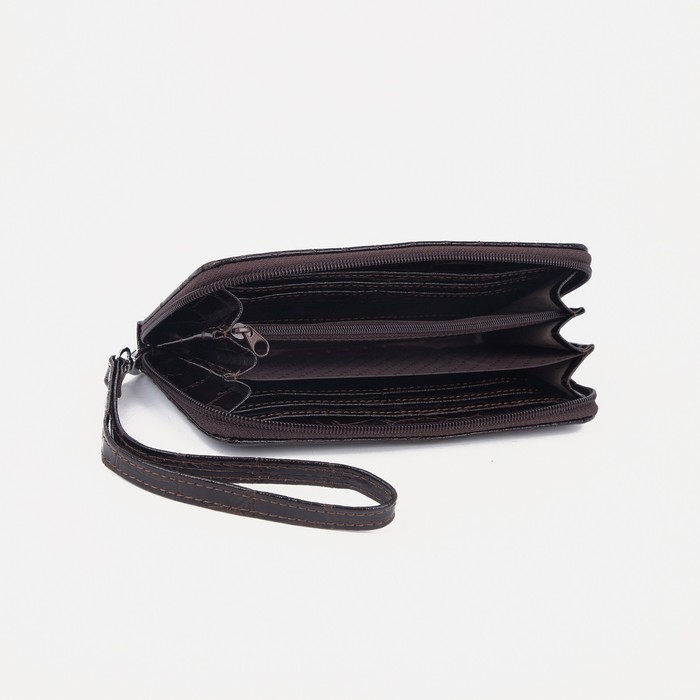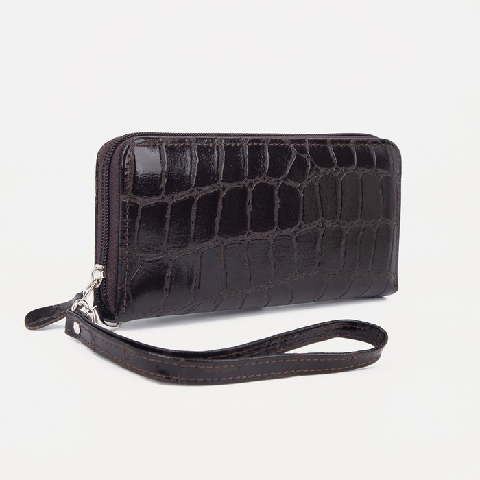 Кошелёк женский на молнии, с ручкой, цвет коричневый