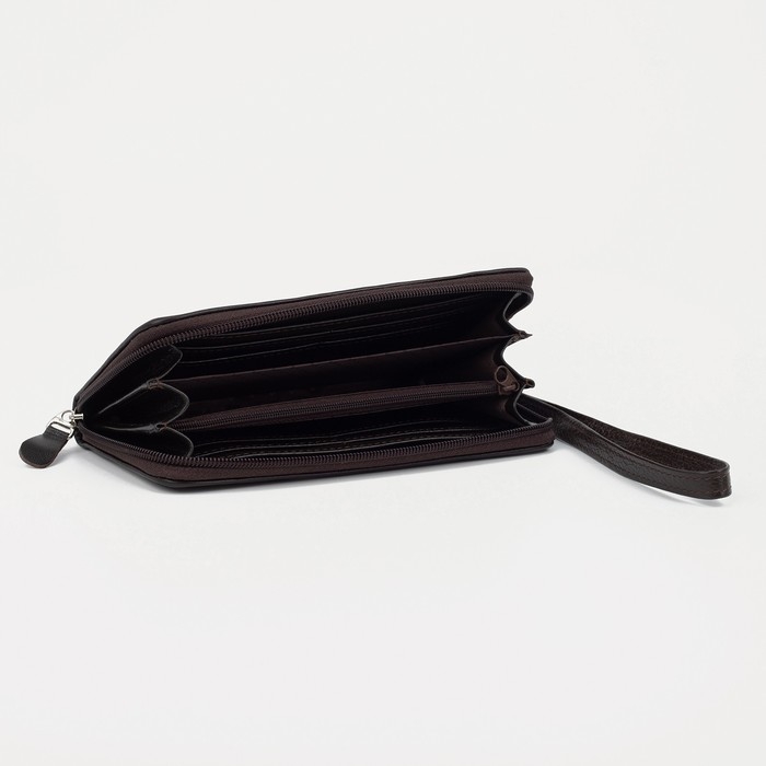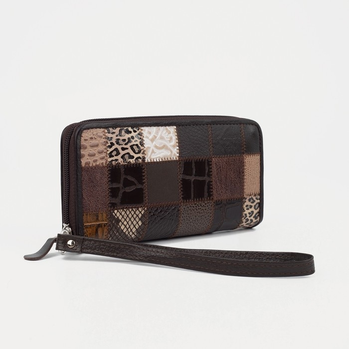 Кошелёк женский на молнии, с ручкой, цвет коричневый