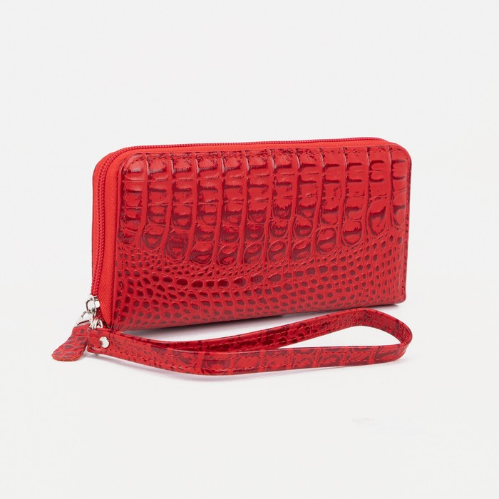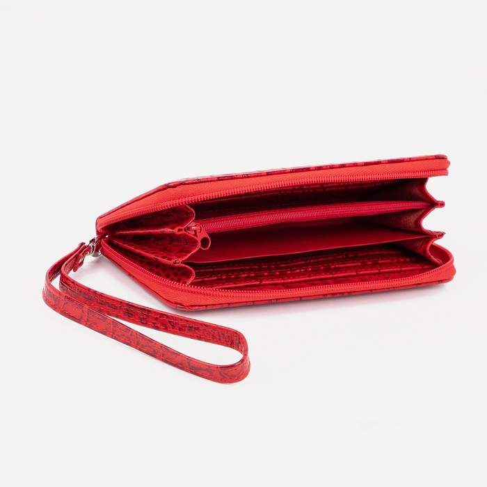 Кошелёк женский на молнии, с ручкой, цвет красный