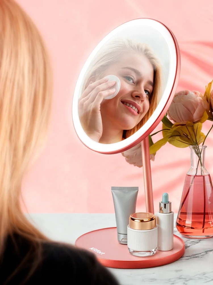 С косметическим зеркалом Kitfort KT-4123 нанесение макияжа и проведение косметических процедур станет удобнее. Благодаря пластиковой подставке зеркало устанавливается на стол, и вам не нужно держать его в руках во время косметических процедур. Угол наклона зеркальной поверхности регулируется. Контурная подсветка поможет лучше разглядеть все мелкие детали даже в условиях недостаточного освещения в помещении.