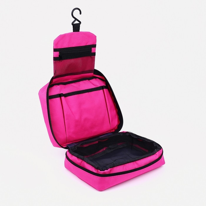 Косметичка дорожная, отдел на молнии, крючок, цвет малиновый