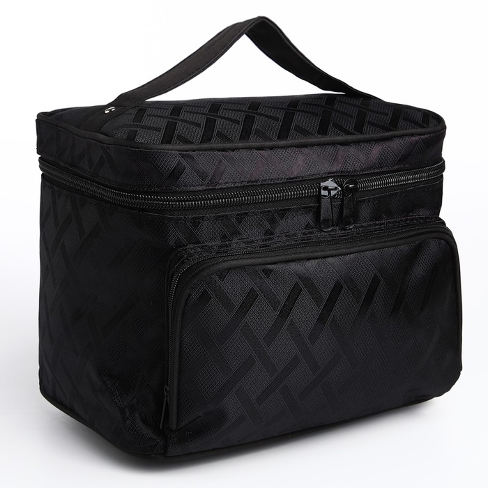 Косметичка на молнии, с зеркалом, цвет чёрный