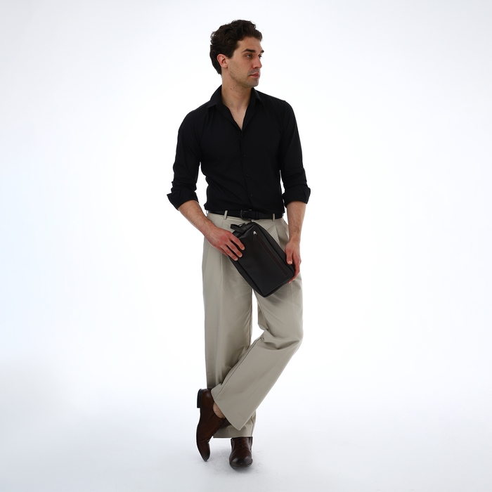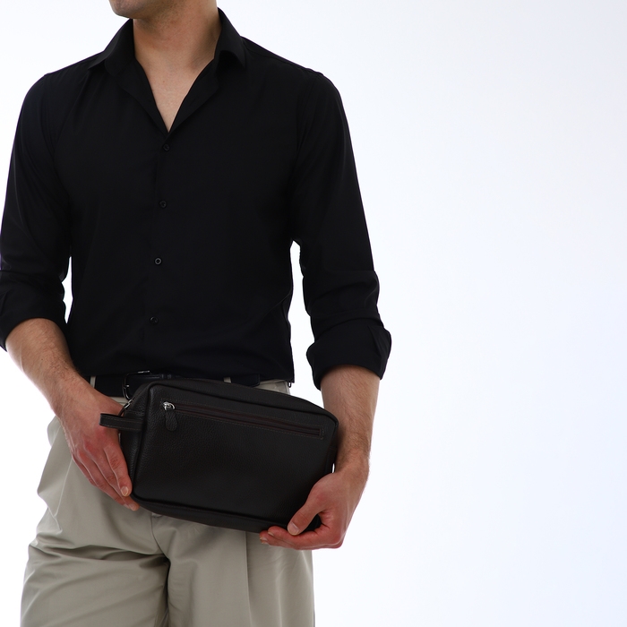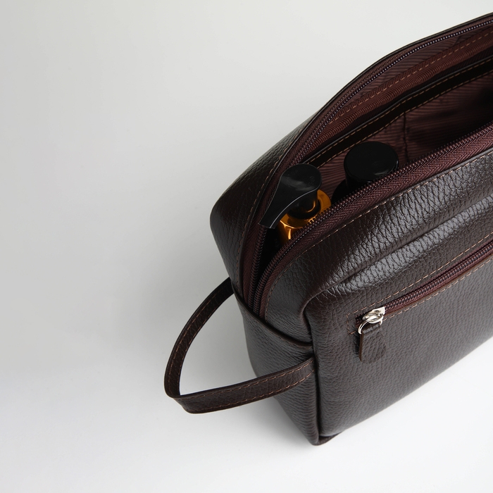 Косметичка-несессер на молнии, TEXTURA, 2 наружных кармана, цвет коричневый