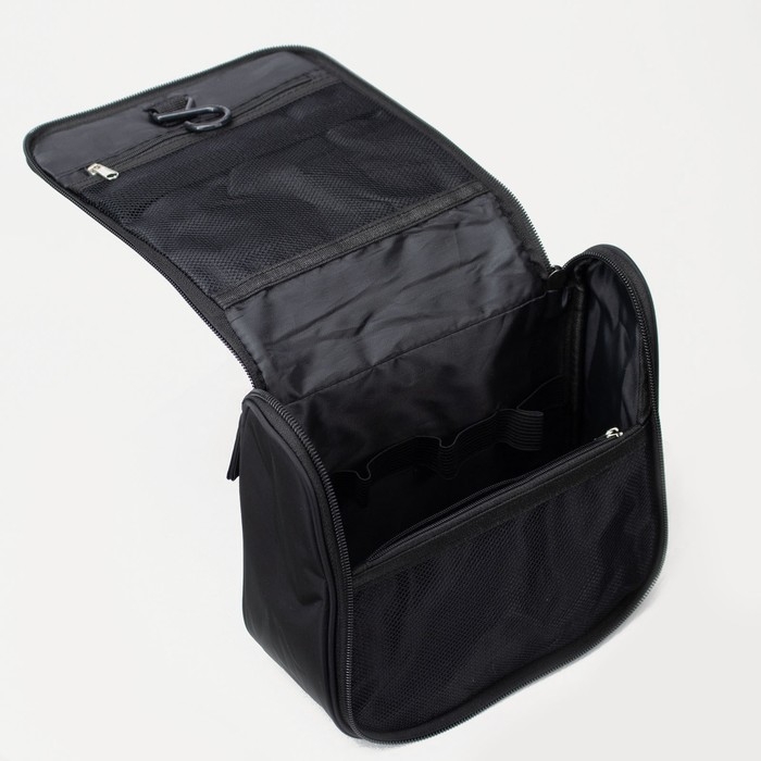 Косметичка-несессер, отдел на молнии, с ручкой, с крючком, цвет чёрный