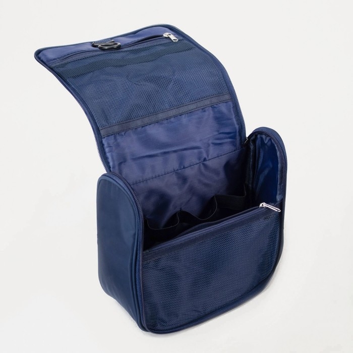 Косметичка-несессер, отдел на молнии, с ручкой, с крючком, цвет синий