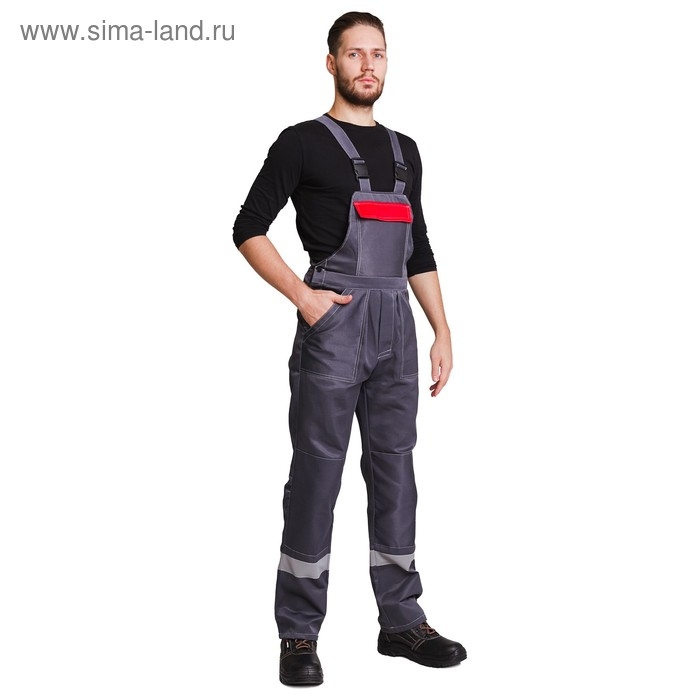 Костюм №802, п/комбинезон+куртка, хлопок/полиэфир, р. 48-50/182-188, цвет серый/красный