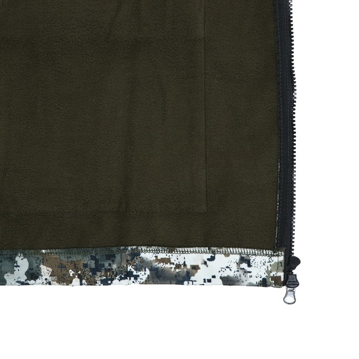 В костюме используется флис весом 180 г., который обеспечивает тепло и комфорт. Подкладка выполнена из гипоаллергенного микрофлиса, что обеспечивает дополнительную защиту и комфорт во время ношения. Анатомический крой костюма обеспечивает идеальную посадку на фигуру. Имеет 6 функциональных карманов.