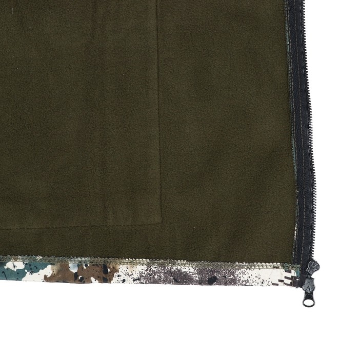 В костюме используется флис весом 180 г., который обеспечивает тепло и комфорт. Подкладка выполнена из гипоаллергенного микрофлиса, что обеспечивает дополнительную защиту и комфорт во время ношения. Анатомический крой костюма обеспечивает идеальную посадку на фигуру. Имеет 6 функциональных карманов.