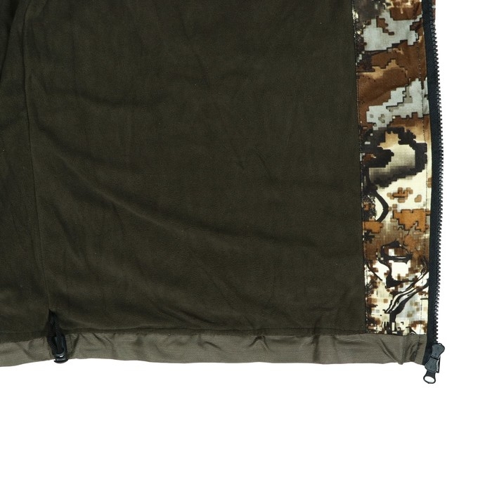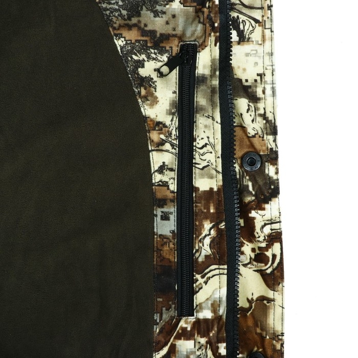 Костюм имеет подклад из гипоаллергенного микрофлиса, который обеспечивает максимальный комфорт при ношении. Ткань основы - Алова, усилена прочной тканью «Cats Eye» (кошачий глаз) для повышенной прочности и долговечности.