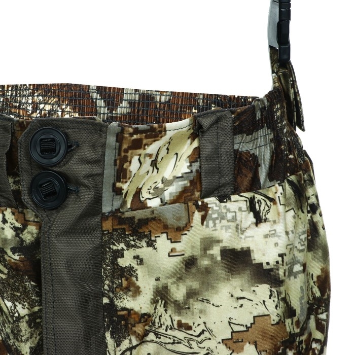 Отстегивающиеся бретели брюк, оснащенные системой кобура, позволяют регулировать посадку брюк по фигуре и обеспечивают комфорт при движении. Широкий пояс брюк с шлевками дополнительно фиксирует костюм на талии.