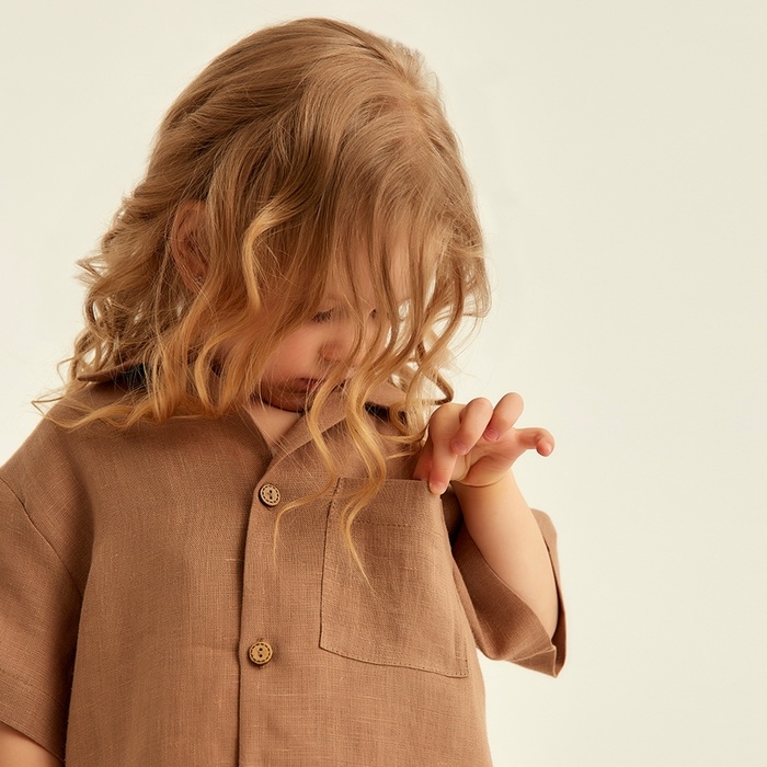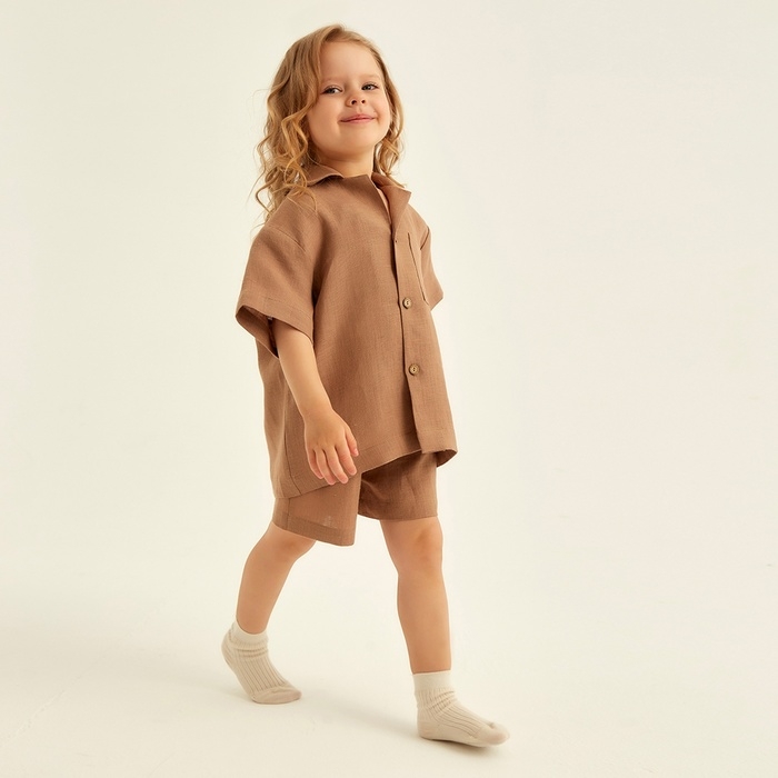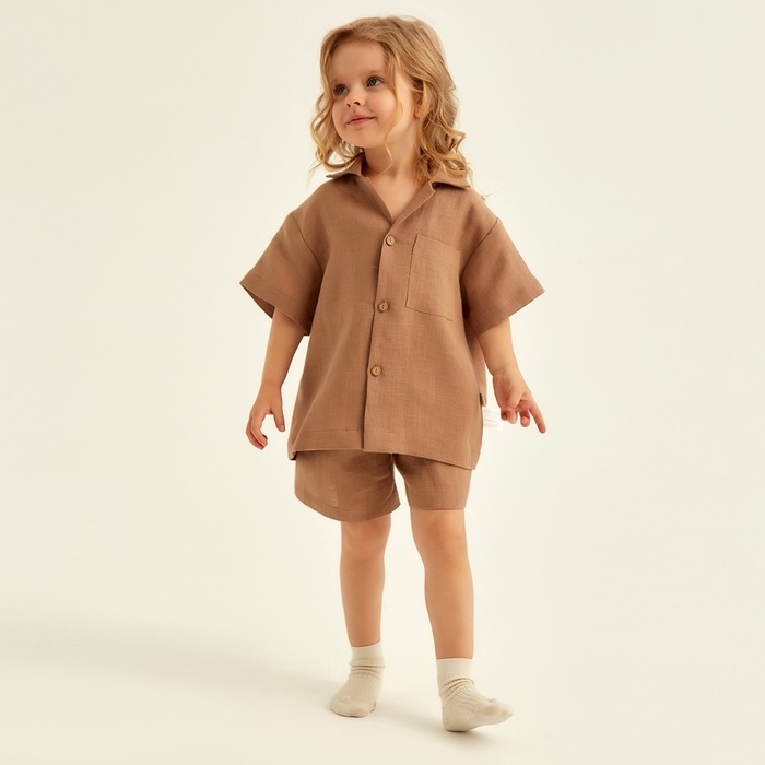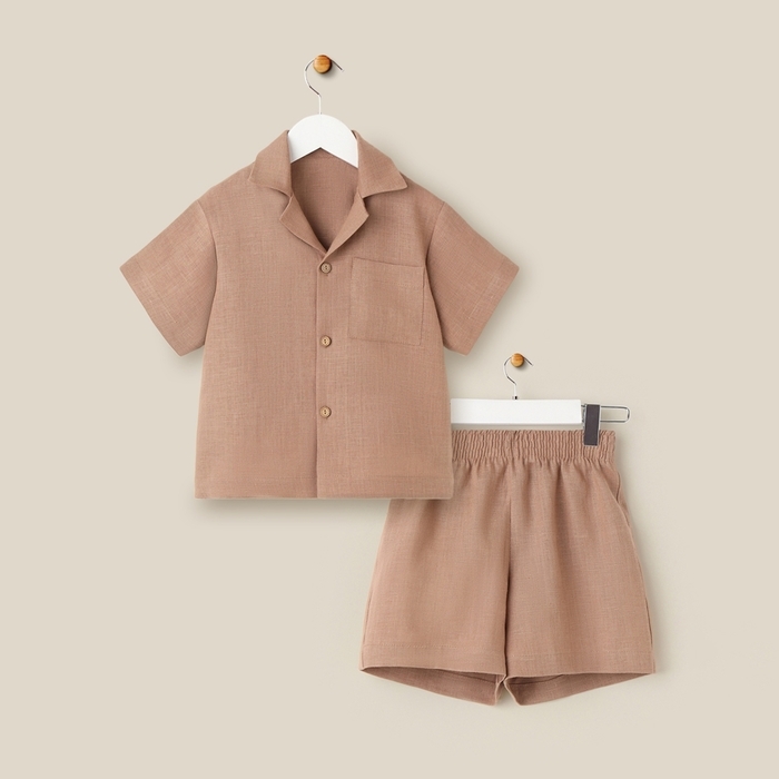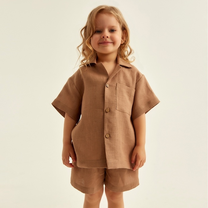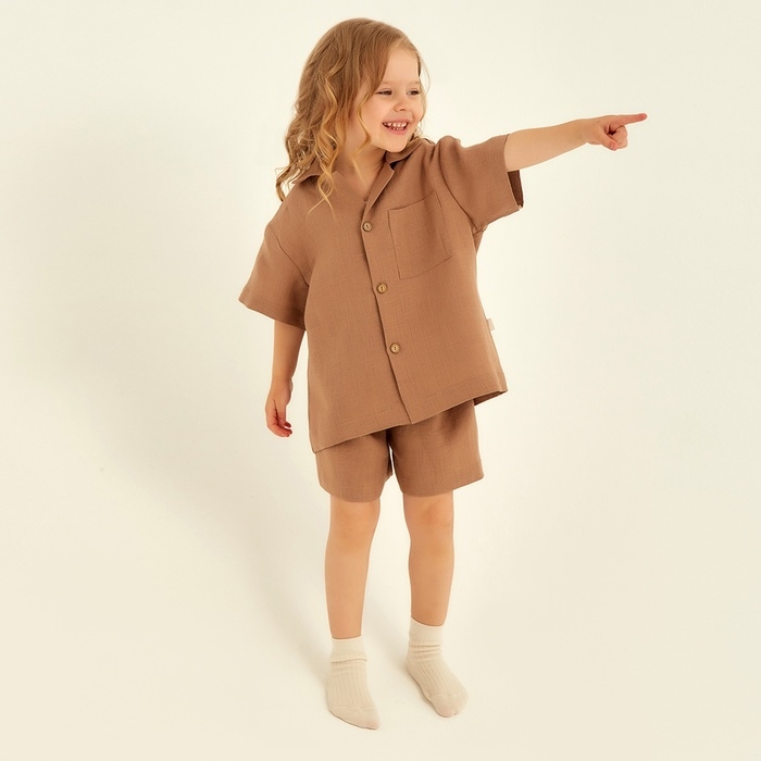 Костюм детский домашний (рубашка и шорты) SL HOME р 34 (122-128), кофейный