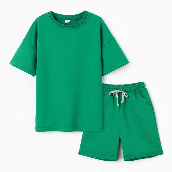 Костюм детский (футболка,шорты), цвет зеленый, рост 116