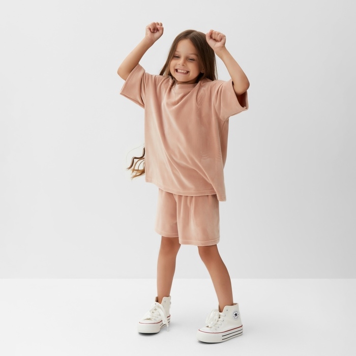Костюм детский (футболка, шорты) KAFTAN Plushy р.34 (122-128), бежевый