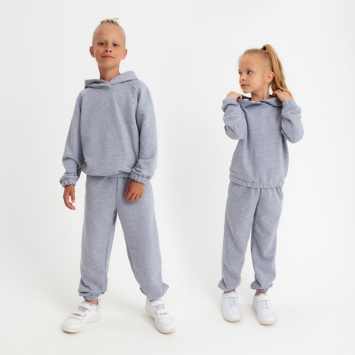 Костюм детский (худи, брюки) MINAKU цвет светло-серый меланж, рост 140