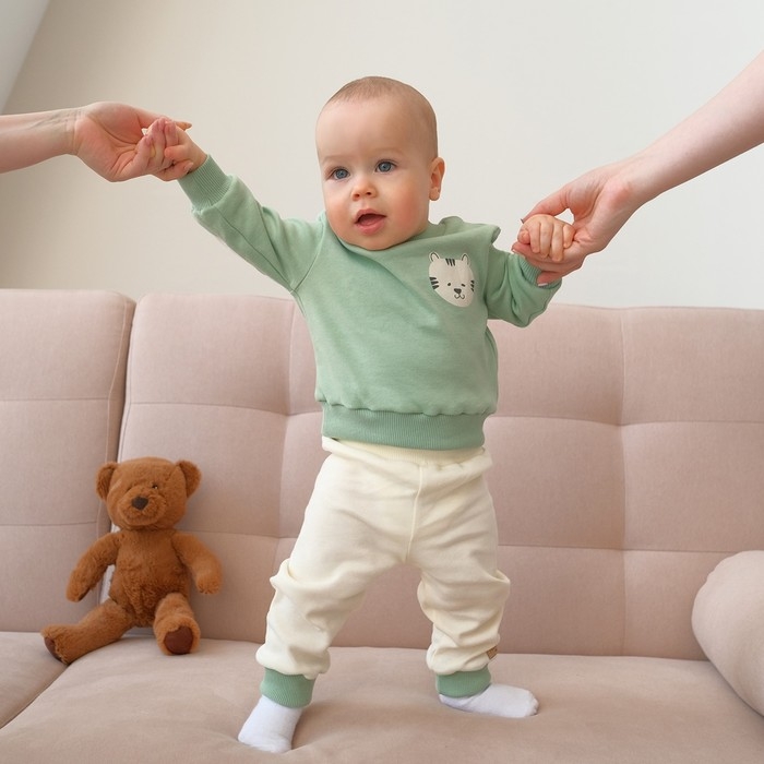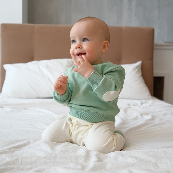 Костюм детский (свитшот, брюки) MINAKU, цвет зелёный/экрю, рост 68-74 см