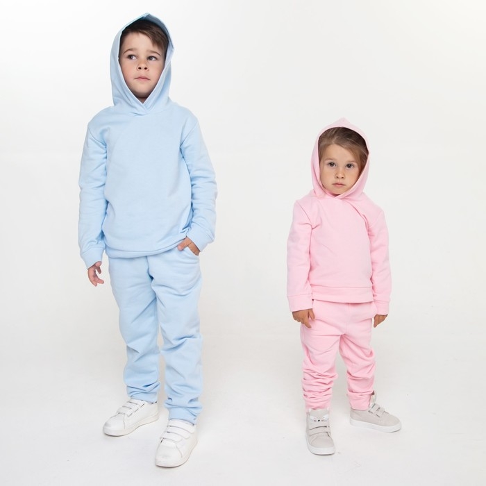 Костюм детский (толстовка, брюки) с НАЧЁСОМ, цвет св.голубой, рост 116 см