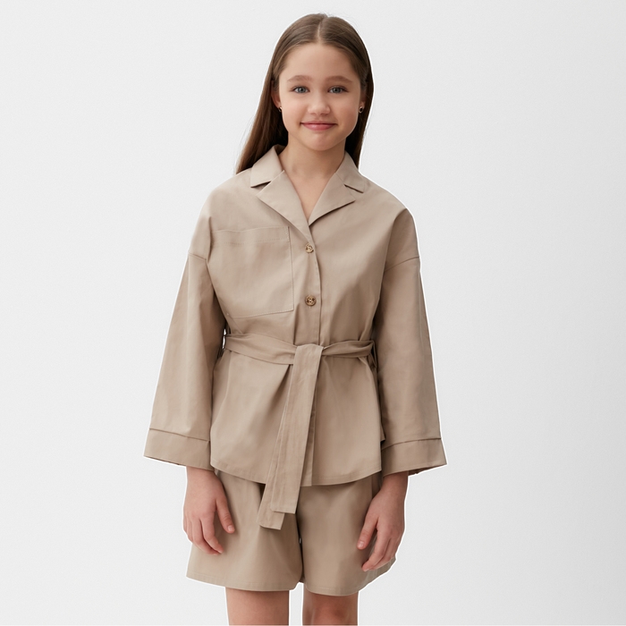 Костюм для девочки (Рубашка и шорты) MINAKU, цвет бежевый, рост 164 см