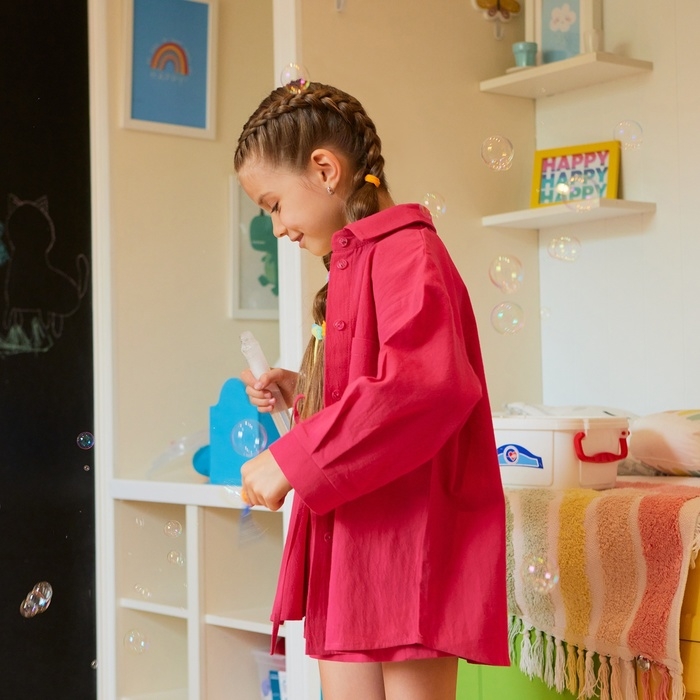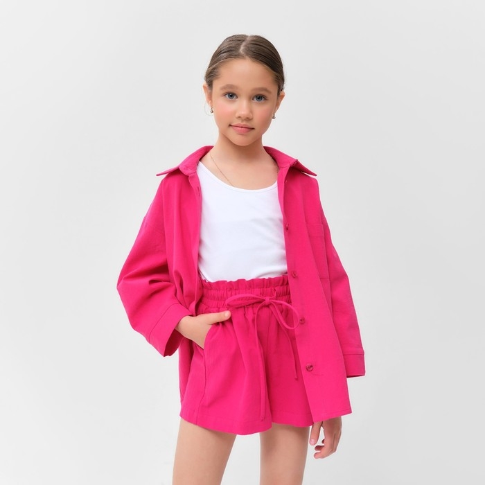 Костюм для девочки (рубашка и шорты) MINAKU, цвет фуксия, рост 158-164 см
