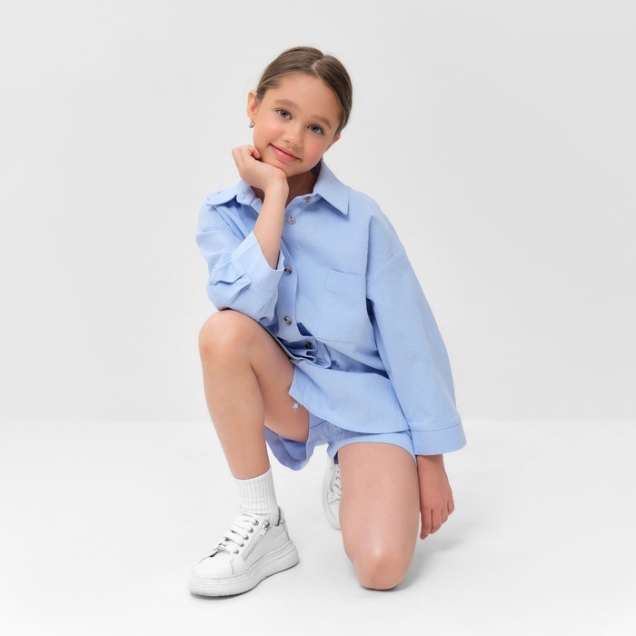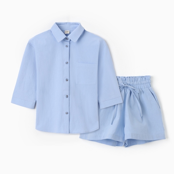 Костюм для девочки (рубашка и шорты) MINAKU, цвет голубой, рост 146-152 см