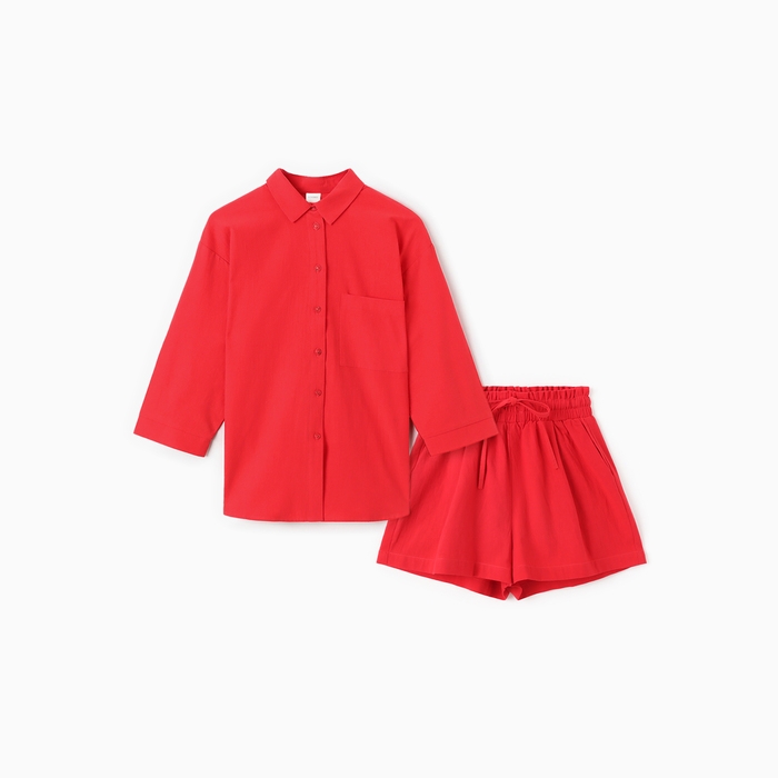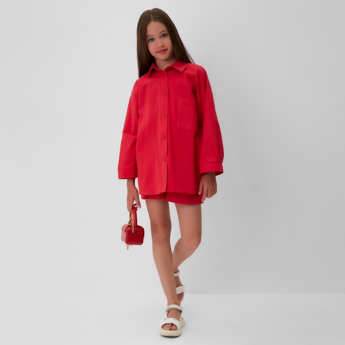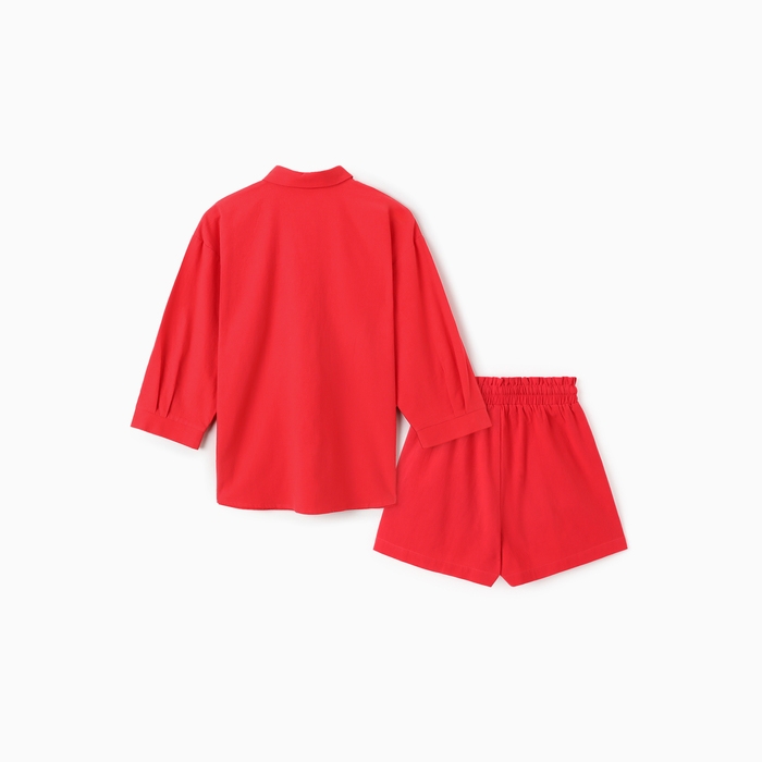 Костюм для девочки (рубашка и шорты) MINAKU, цвет красный, рост 134-140 см