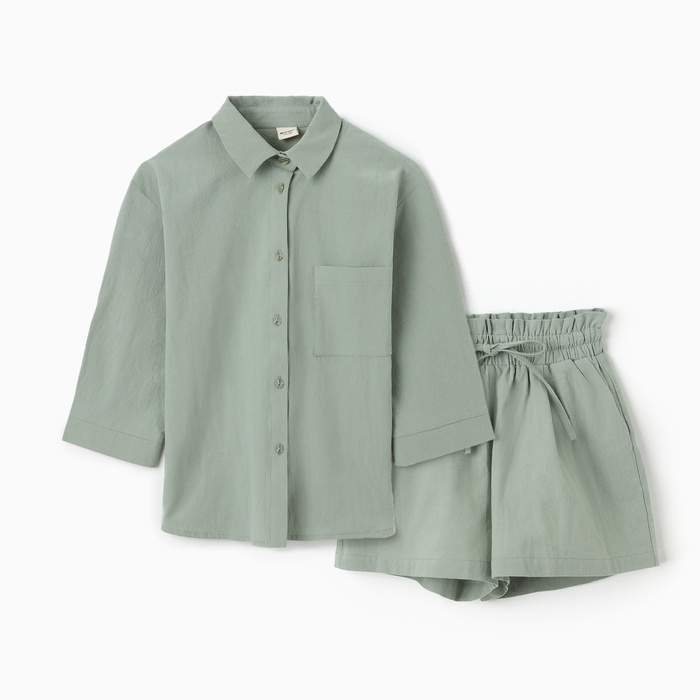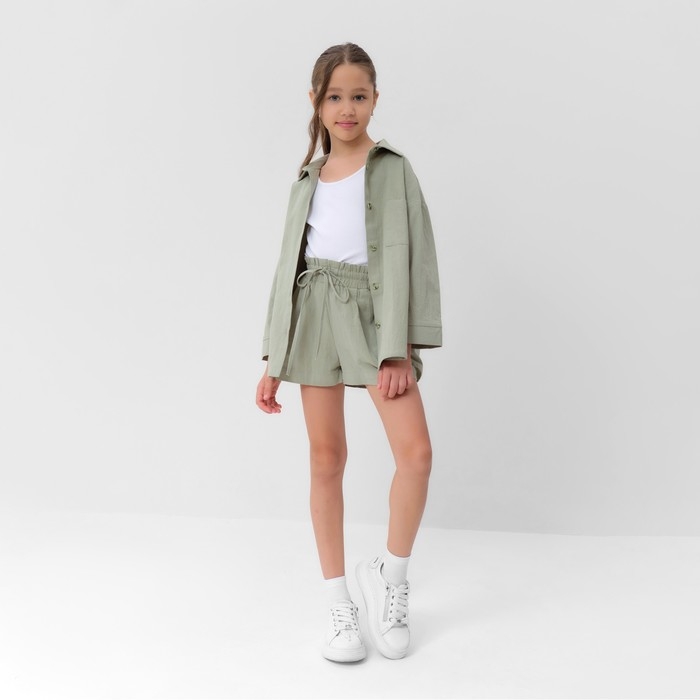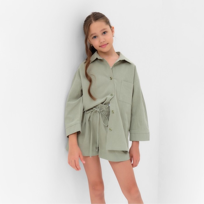 Костюм для девочки (рубашка и шорты) MINAKU, цвет оливковый, рост 158-164 см