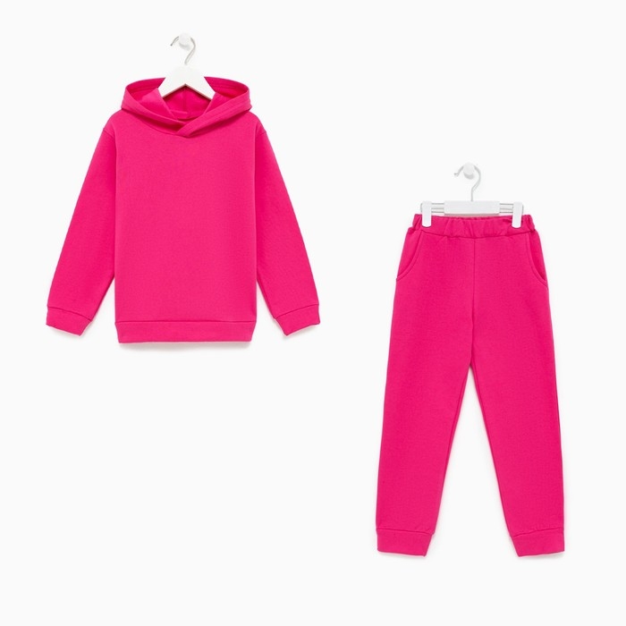 Костюм для девочки (толстовка, брюки) с НАЧЁСОМ, цвет фуксия, рост 92 см