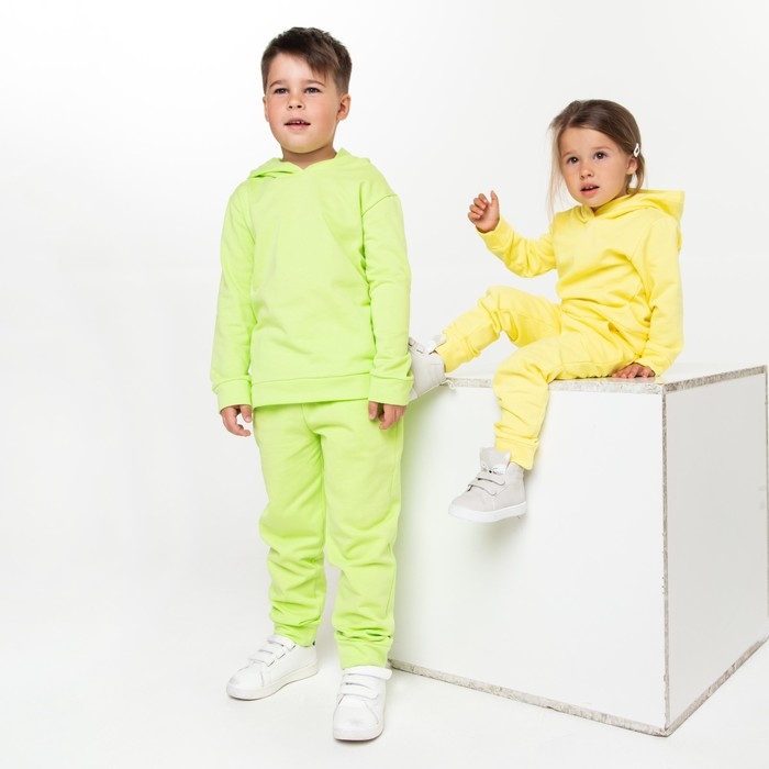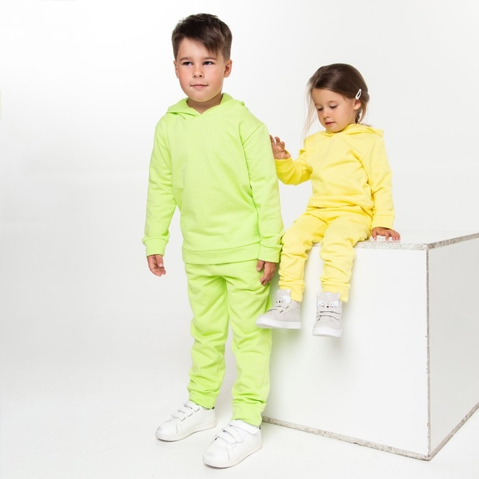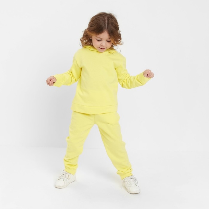 Костюм для девочки (толстовка, брюки) с НАЧЁСОМ, цвет жёлтый, рост 122 см