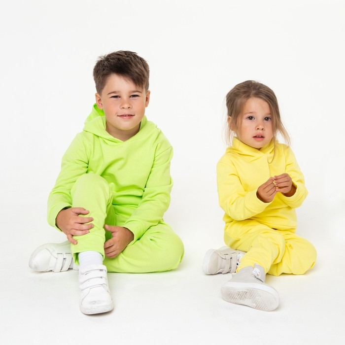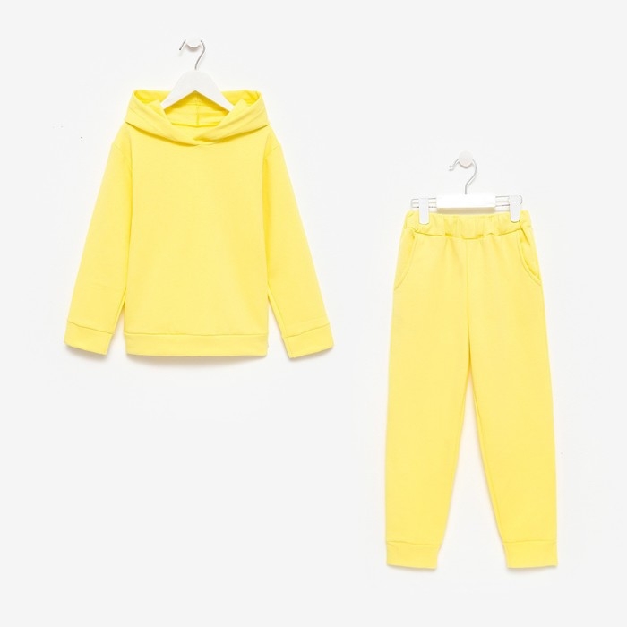 Костюм для девочки (толстовка, брюки) с НАЧЁСОМ, цвет жёлтый, рост 98 см