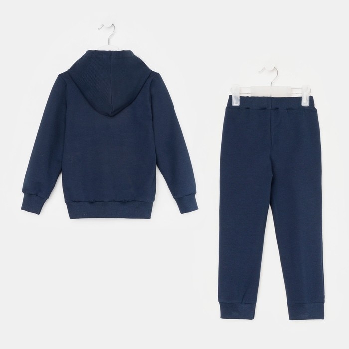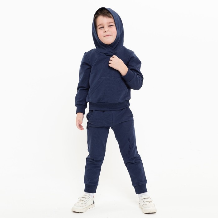 Костюм для мальчика (толстовка/брюки), цвет тёмно-синий, рост 98