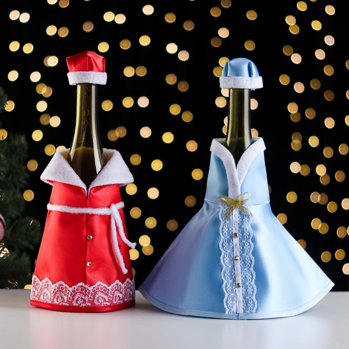 Костюм для шампанского «Дед Мороз и Снегурочка» цвет голубой и красный