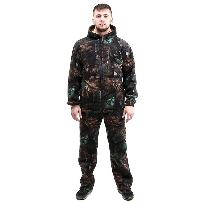 Флисовый костюм подойдёт для холодного времени года. Будет незаменим для походов, рыбалки, любых зимних видов спорта и других активных видов деятельности. Камуфляжная расцветка отлично подойдёт для маскировки.