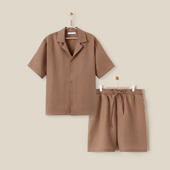 Костюм мужской домашний (рубашка с коротким рукавом и шорты) SL HOME р. M, кофейный