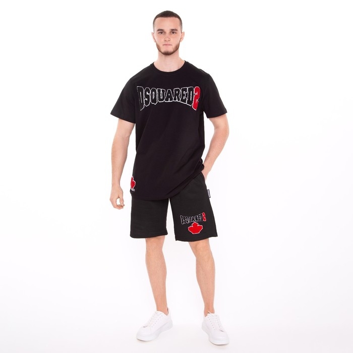 Костюм мужской (футболка/шорты), цвет чёрный/принт МИКС, размер M