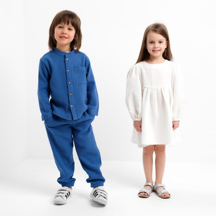 Костюм (рубашка и брюки) детский KAFTAN "Муслин", р.34 (122-128 см) синий