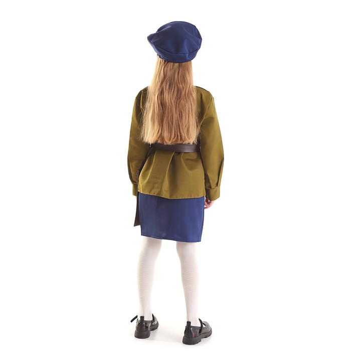 Карнавальный костюм для девочки "Военный", платье, ремень, пилотка, р-р 72, рост 140 см