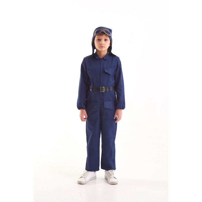 Костюм военного "Лётчик", комбинезон, ремень, шлем, очки, 3-5 лет, рост 104-116 см превратит ребёнка в отважного пилота. Такой образ пригодится для участия юного защитника в театральных постановках, тематических мероприятиях по случаю Дня Победы, 23 Февраля и других военных праздников.