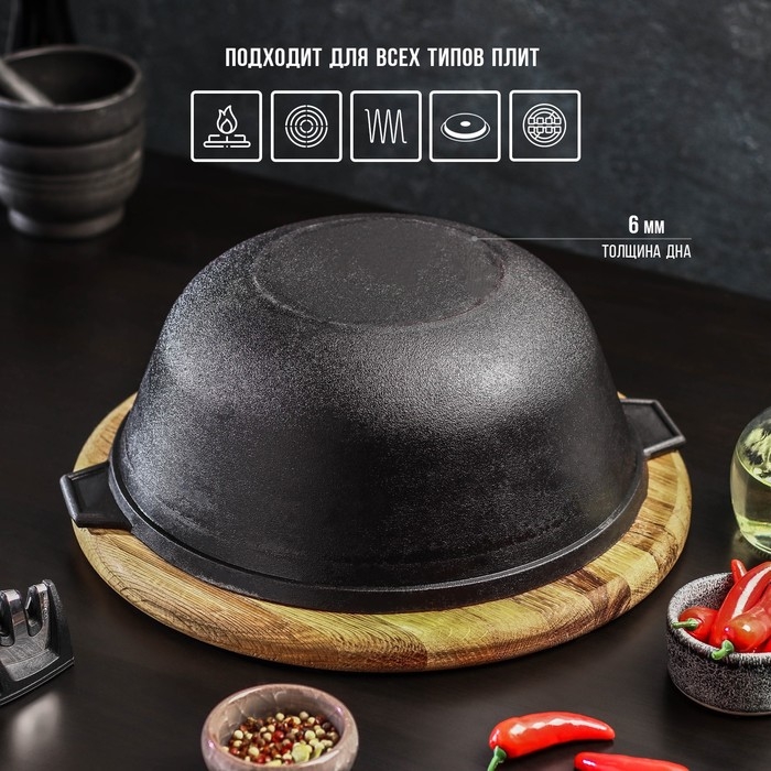 Котел литой чугунный Magma, 3 л, стеклянная крышка