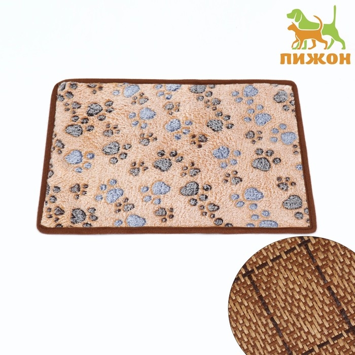 Коврик для отдыха животных, двусторонний (флис+ротанг), 55 х 45 см, бежевый