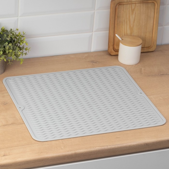 Коврик для сушки посуды Доляна «Волна», силикон, 45×40,5×0,4 см, цвет серый