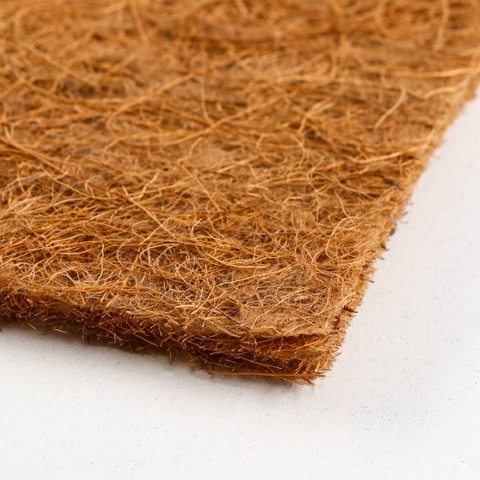 Коврик из кокосового волокна, коврик для улиток, для рептилий, для террариумов. Коврик для террариума из кокосового волокна, легко увлажняется. Коврик можно подрезать под нужный размер террариума. Состав: кокосовое волокно 100%.Экологичный кокосовый коврик подходит для создания естественных условий содержания рептилий, змей, ящериц (эублефар, агама). Также кокосовый наполнитель для террариума отлично подойдёт для обитания лягушек, улиток, насекомых, пауков и черепах, так как кокосовая подстилка из натурального волокна не царапает и не ранит нежную кожу питомцев и равномерно распределяет тепло. Коврик для террариума, гипоаллергенный, натуральный. Свойства кокосовых ковриков:- уменьшает неприятные запахи;- защищает от избыточной влаги;- создает естественный рельеф- натуральный цвет и фактура отлично смотрится в террариуме или клетке для животного.