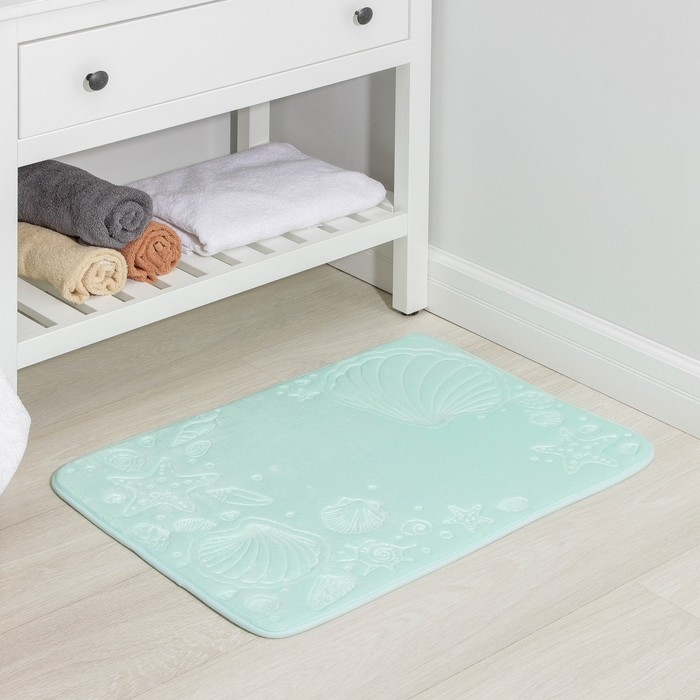 Коврик для ванной Доляна «Морское дно», 50×70 см, цвет бирюзовый