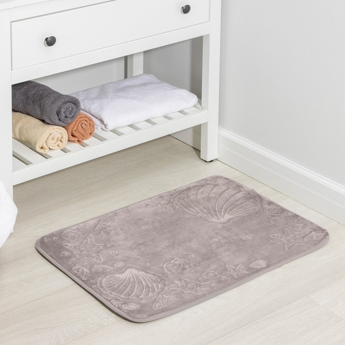 Коврик для ванной Доляна «Морское дно», 50×70 см, цвет серый
